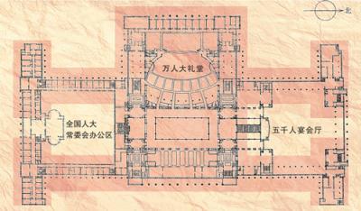 张鎛打开总理审定的那张设计图,马上发现彭真的要求不可能实现——图纸上,万人大礼堂被设计成了圆形,按每个座位最少占0.9平方米计算,大礼堂的第一层最多能容下2750个座位,与彭真要求的3500个相差甚远。